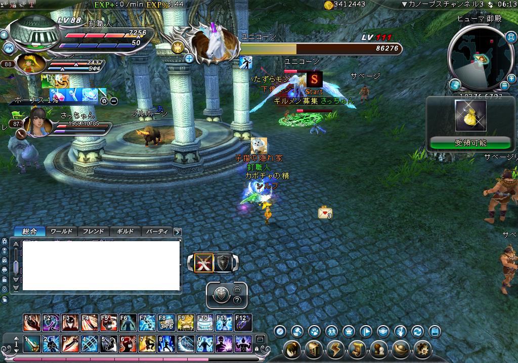 最近は専らレベリング作業・・というか狩り効率が分給10kというだらしない狩りを続けてなんとか88までレベルアップする事ができました!