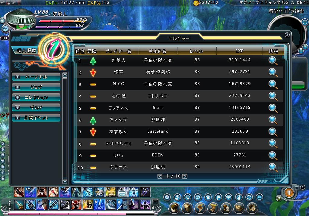 いやぁ、1鯖の人を見たりしてると平気で25k超えてるんですね・・・オレが20k超えるのは一体何時になるのだろーか・・・!